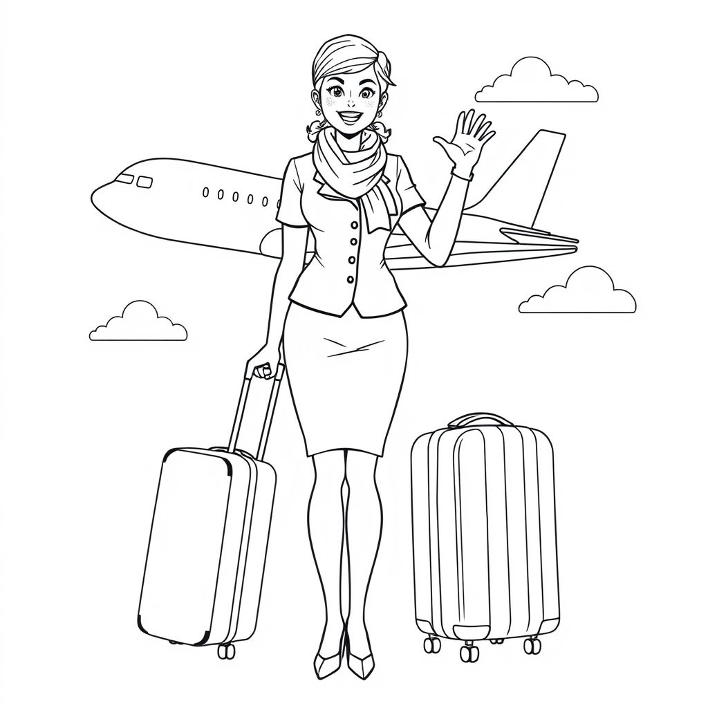 Hình ảnh nữ tiếp viên hàng không xinh đẹp luôn thu hút sự chú ý bởi vẻ ngoài thanh lịch và chuyên nghiệp. Khi bạn chọn hình ảnh này để tô màu, bạn sẽ cảm nhận được sự tự tin và năng động mà họ mang lại. Đây cũng là cơ hội tuyệt vời để thể hiện gu thẩm mỹ cá nhân qua việc lựa chọn màu sắc phù hợp cho trang phục của họ.